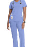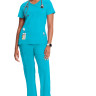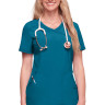 Mūsdienīga medicīnas blūze-tops ar divām priekšējām kabatam.