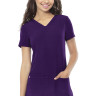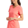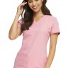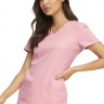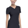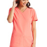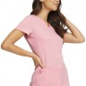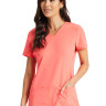 Современный топ с V-образным вырезом, закругленными карманами и небольшим внутренним карманом, розовой резиновой петлей снаружи и потайным функциональным розовым рукавом, а также резиновой петлей для вытягивания шнура наушников внутри, передними и задними швами принцессы и боковыми шлицами.