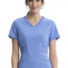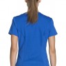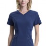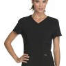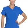 Mūsdienīgs V veida kakla izgriezuma medicīnas krekls. Augšdaļa rievota. Elastīgs rievots panelis muguras pusē, lai nodrošinātu slaidinošu efektu, kā arī papildus kustībām un komfortam. Divas lielas priekšējās kabatas un iekšējā kabata.