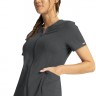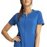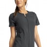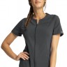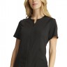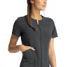 This Contemporary fit V-neck full zip top has a knit inset double neckline. Other features include knit front and back panels, two angled front pockets plus a shirttail hem. Center back length: 26"