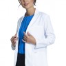 - Šim Modern Classic pieguļamajam īsa garuma laboratorijas mētelim ir iezāģēti atloki, trīs pogu aizdare priekšpusē un princeses vīles aizmugurē, lai nodrošinātu piegulšanu un formu.