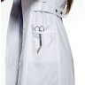 A Contemporary fit button front lab coat features a notched lapel, multi needle topstitching, front and back princess seams, a back yoke, a cell phone pocket, multi sectional utility slots, two roomy patch pockets, an I.D. bungee loop and side belts that adjust to fit.