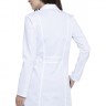 Mūsdienīgs halāts klasiskā stilā ar atlokāmu apkaklīti un pogu aizdari priekšpusē. Kopumā ir četras kabatas: 1 uzšūta krūšu kabata, 1 ārējā uzšūta kabata ar sekciju, 1 ārēja kabata 8” planšetēm, 1 iekšējā labā kabata 8” planšetēm. Priekšējās un mugurējās šuves, kā arī iešūta josta mugurpusē papildina izskatu. Centrālais muguras garums: 91 cm.