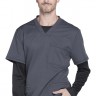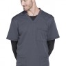 A Men's fit V-neck top features a knit collar, chest patch pocket with pencil slot, front welt pockets (the right with a hidden grommet for a headphone cable) and a back shoulder yoke. Also featured are a signature tonal heat-transfer logo, side vents and coverstitch detail throughout. Center back length: 30"